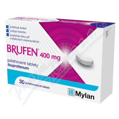 Brufen 400 je nesteroidní antirevmatikum s výrazným účinkem snižujícím horečku, tlumícím bolest i u bolestivých stavů nerevmatického původu a s účinkem protizánětlivým. Brufen 400 není vhodný pro děti do 12 let. Čtěte pozorně příbalový leták.