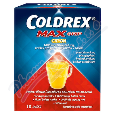 Lék ve formě horkého nápoje proti chřipce a nachlazení. Snižuje horečku, tlumí bolesti hlavy, kloubů a svalů, uvolňuje ucpaný nos, tlumí bolesti v krku a doplňuje vitamin C. Přípravek je určen pro dospělé s tělesnou hmotností nad 65 kg. Čtěte pozorně příbalový leták.