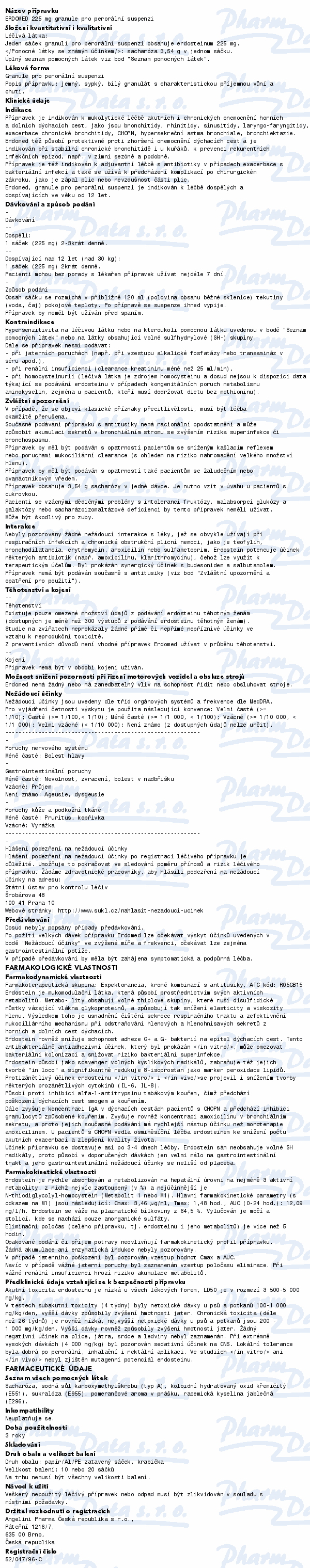 Přípravek obsahuje léčivou látku erdostein, která snižuje viskozitu hlenů v průduškách, což usnadňuje vykašlávání. Je určen k léčbě akutních i chronických onemocnění horních a dolních cest dýchacích, provázených tvorbou hlenu a vlhkým kašlem. Čtěte pozorně příbalový leták.
