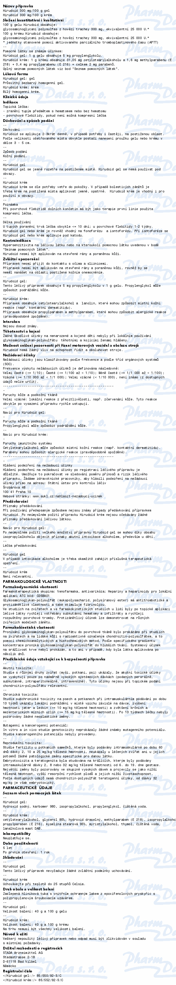 Hirudoid krém je přípravek, který potlačuje otok a zánět. Přípravek je určen na onemocnění povrchových žil, krevní výrony, pohmožděniny a otoky. K zevnímu použití na kůži. Čtěte pozorně příbalový leták.