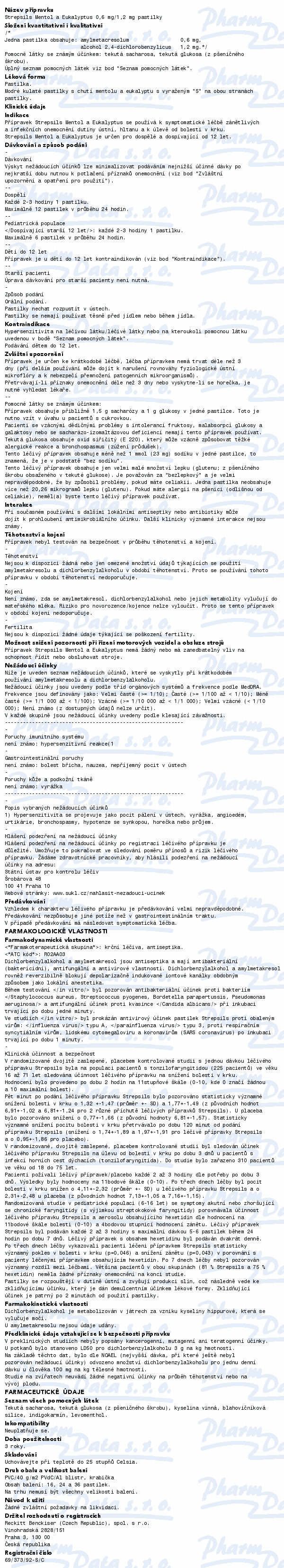 Pastilky Strepsils Mentol a Eukalyptus obsahují léčivé látky amylmetakresol a dichlorbenzylalkohol, které mají antiseptické účinky tzn., že ničí bakterie, viry a kvasinky způsobující bolest v krku a záněty v dutině ústní a hltanu. Pro osoby od 12 let. Čtěte pozorně příbalový leták.