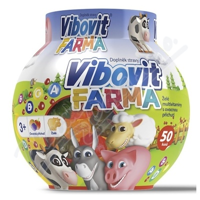 Doplněk stravy Vibovit Jelly Farma obsahující vitamíny a minerály je doporučován hlavně všem aktivním dětem, jejichž pravidelná fyzická zátěž zvyšuje požadavky na příjem těchto látek. Vibovit obsahuje pouze přírodní barviva. 50 želé bonbónů.