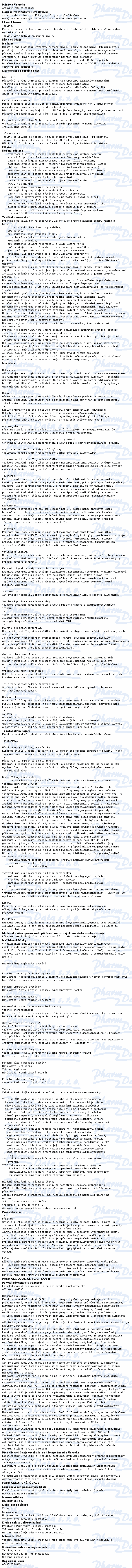Přípravek s obsahem kyseliny acetylsalicylové ve formě pufrovaných tablet tlumí bolest a snižuje horečku, ve vyšších dávkách má protizánětlivé účinky. Čtěte pozorně příbalový leták.
