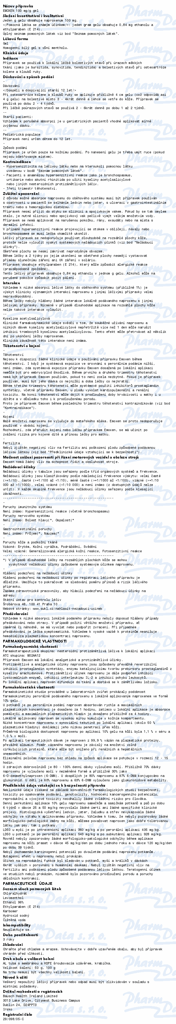 Přípravek Emoxen Gel se používá k léčbě poúrazových bolestivých stavů, jako jsou pohmoždění, podvrtnutí kloubu a poranění měkkých částí kloubů včetně poúrazového zánětu výstelky kloubního pouzdra, zánětu kloubního váčku a zánětu šlach. Čtěte pozorně příbalový leták.
