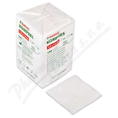 Lekarnov.cz > Zdravotnické potřeby > Prostředky obvazové, krycí a fixační > Kompresy > z gázy > Kompresy gáza 7.5x7.5cm 8 vrstev nesterilní 100ks