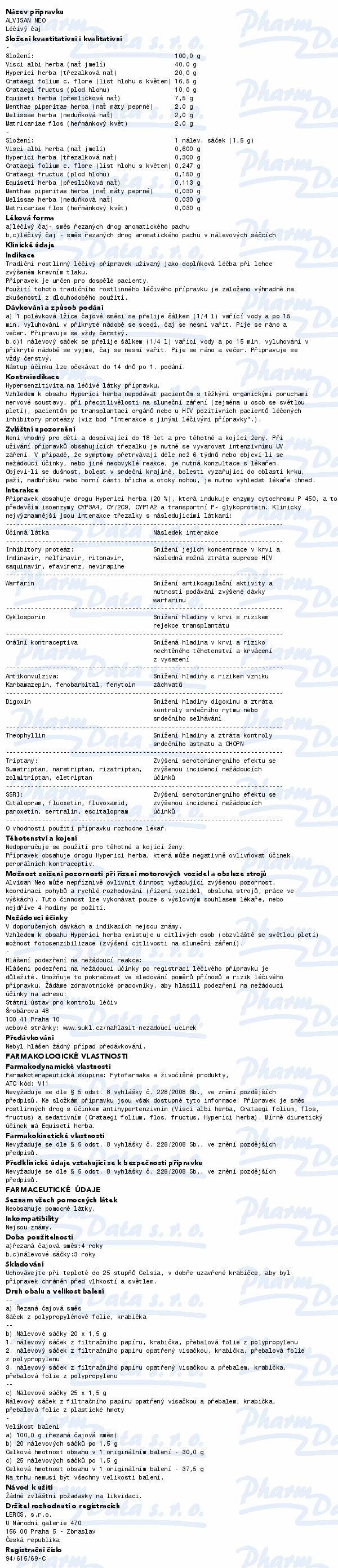 Lekarnov.cz > Čaje a rostlinné přípravky > Bylinné > Směsové > sypané > LEROS Alvisan NEO por.spc.1x100g sypaný