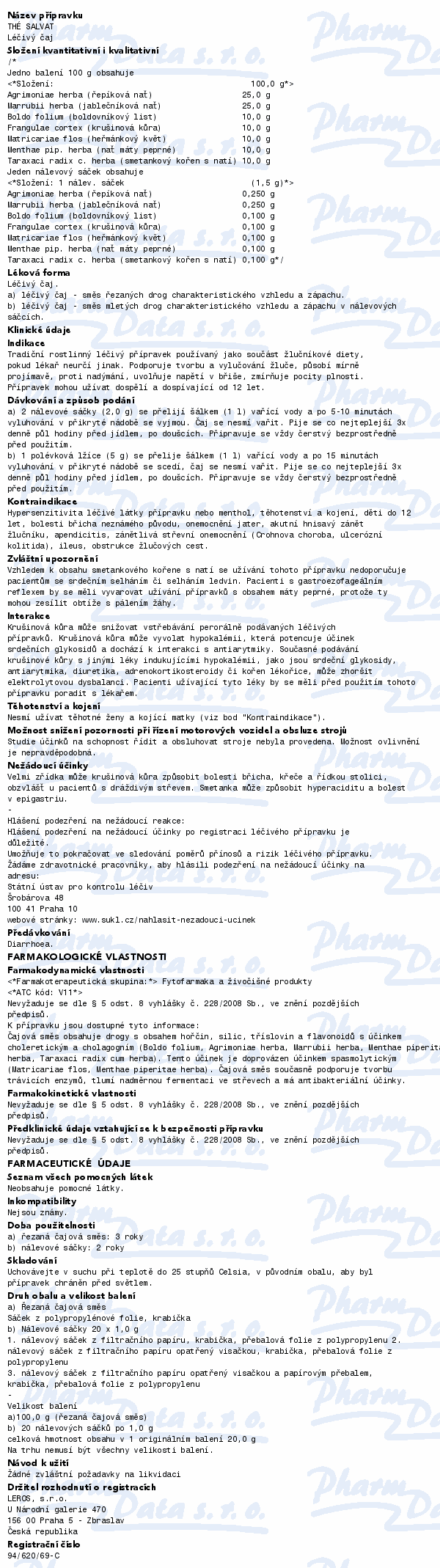 Leros Thé Salvat léčivý čaj choroby žlučníku a žlučových cest. Je vhodnou součástí jaterní a žlučníkové diety. Podporuje tvorbu a vylučování žluči. Čtěte pozorně příbalový leták.