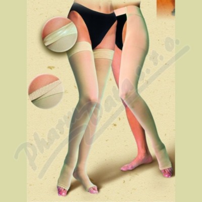 Stehenní kompresivní punčochy se samodržícím lemem pro léčbu a prevenci vzniku křečových žil jsou vyráběny z velmi jemného úpletu s vysokým podílem microvlákna.