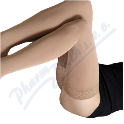 Stehenní kompresivní punčochy se samodržícím lemem pro léčbu a prevenci vzniku křečových žil jsou vyráběny z velmi jemného úpletu s vysokým podílem microvlákna.