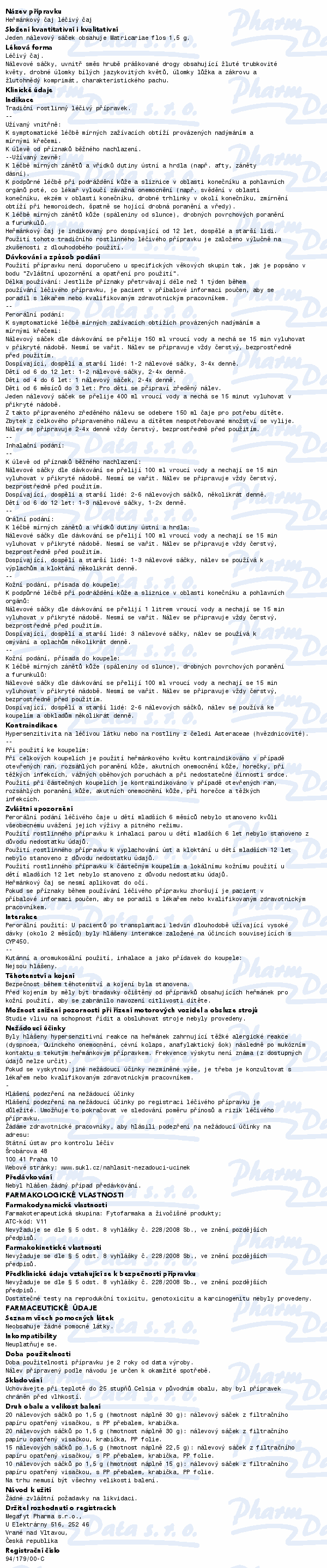 Přípravek je určen jako podpůrná léčba vnitřně k léčbě mírných žaludečních obtíží, zevně na záněty kůže a sliznic a drobná poranění. Čtěte pozorně příbalový leták.