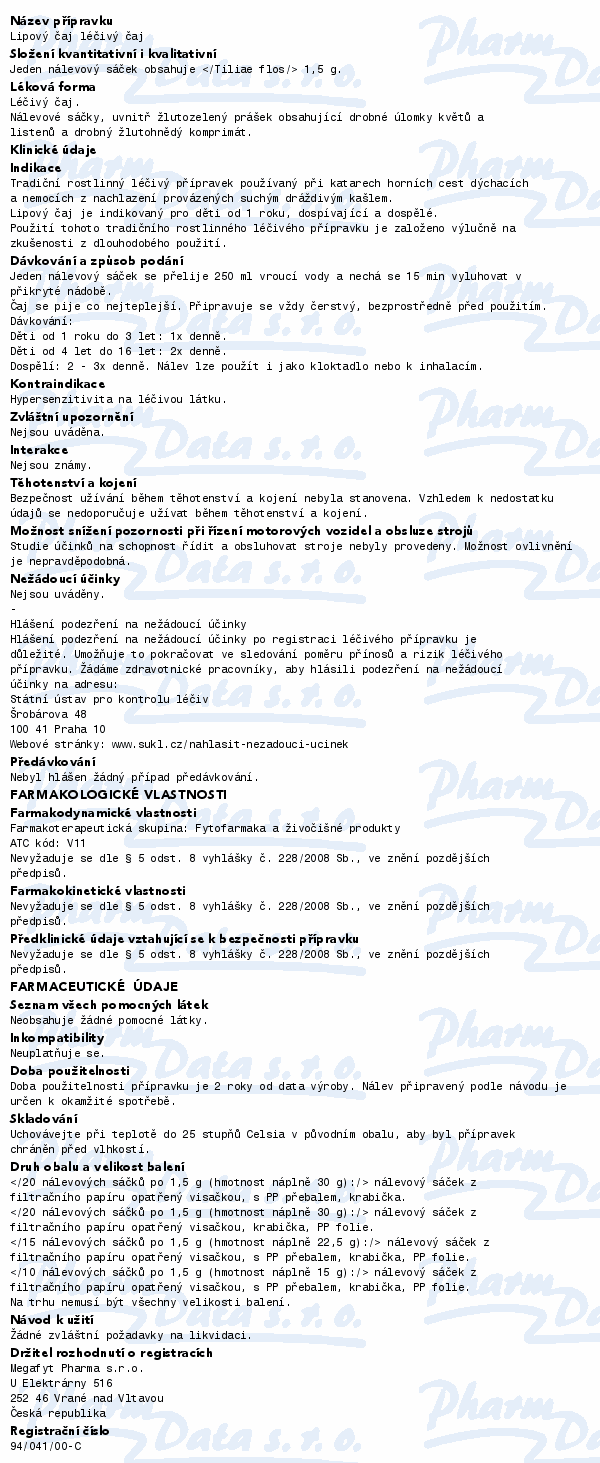 Lekarnov.cz > Léky > Léčiva rostlinného původu > Megafyt Lipový čaj por.spc.20x1.5g