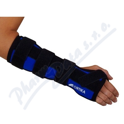 Kratší varianta ortézy k fixaci zápěstí užívaná v ambulantní praxi. Dobře obepíná zápěstí a zajišťuje vysoký užitný komfort. Duralová dlaha, kterou lze vyjmout a tvarovat je zapravena v textilním pouzdru. Vyrobena z příjemného elastického materiálu.