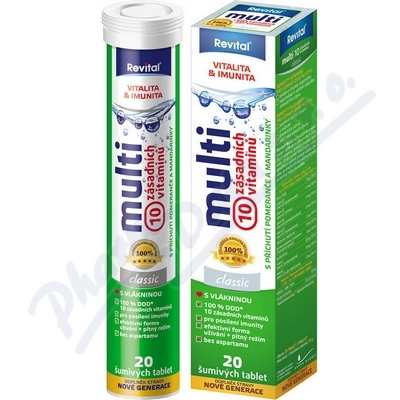 Šumivé tablety s obsahem 100% doporučené denní dávky deseti důležitých vitaminů, které přispívají k normální funkci imunitního systému, ke snížení míry únavy a vyčerpání a ochraně před oxidativním stresem. S příchutí pomeranče a mandarinky.S vlákninou.
