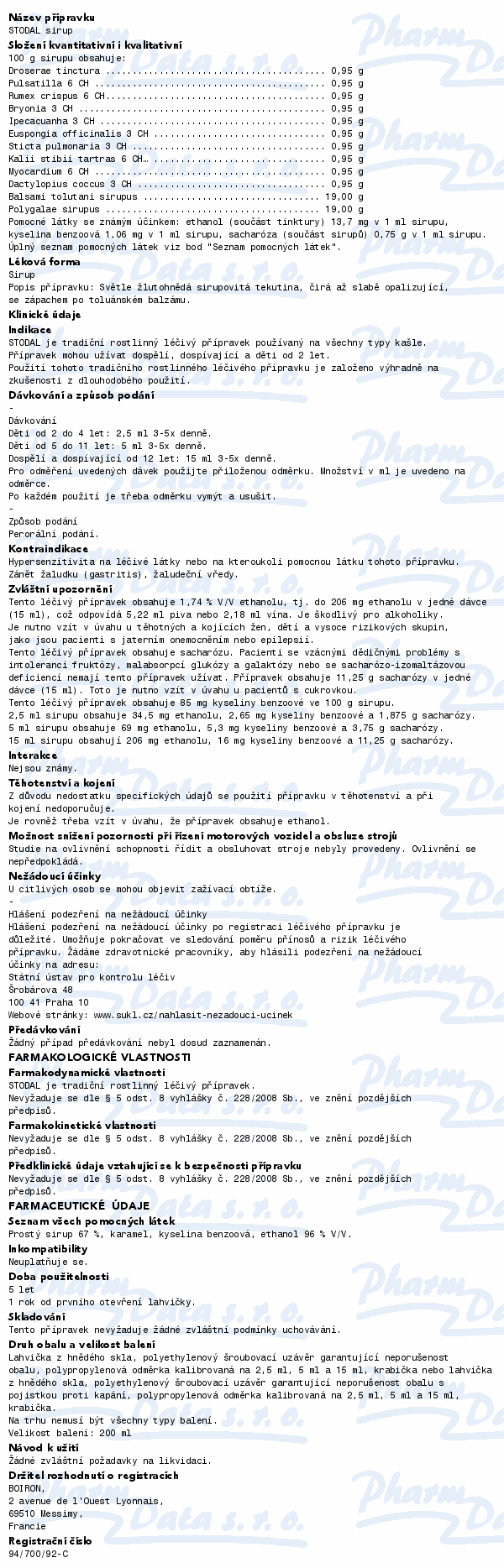 STODAL je tradiční rostlinný léčivý přípravek používaný na všechny typy kašle. Přípravek mohou užívat dospělí, dospívající a děti od 2 let. Čtěte pozorně příbalový leták.
