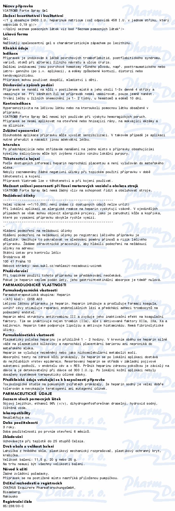 Přípravek ve formě gelu ve spreji, k zevnímu použití. Léčivou látkou přípravku je heparin v liposomální formě. Heparin brání tvorbě krevních sraženin, má mírné účinky protizánětlivé, působí proti otokům, usnadňuje vstřebávání zánětlivé tekutiny. Čtěte pozorně příbalový leták.